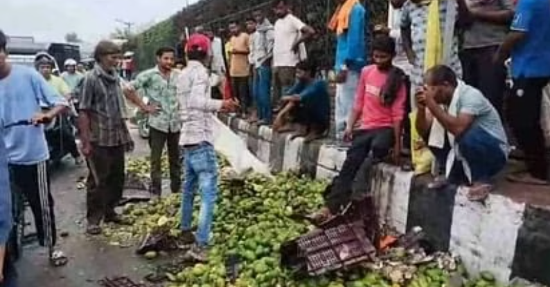 देहरादून रिस्पना पुल के पास अचानक सड़क पर लोग आम बटोरते नजर आए। दरअसल, यहां सड़क पर आम से भरा ट्रक पलट गया।देहरादून के रिस्पना पुल पर देर रात करीब 3:30 बजे एक आम से भरा ट्रक पलट गया। बताया जा रहा है कि ट्रक में लगभग 600 पेटियां आम लदी हुई थीं। हादसे में किसी के हताहत होने की सूचना नहीं है।ट्रक पलटते ही आम सड़क पर बिखर गए। यह नजारा देख स्थानीय लोग मौके पर जुट गए और सड़क से आम उठाने की होड़ मच गई। कुछ ही देर में वहां अफरातफरी जैसा माहौल दिखा। लोग म बटोरते नजर आए।