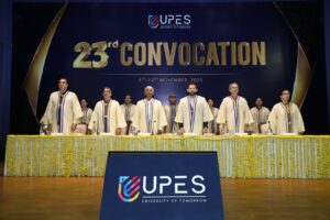 देहरादून, 13 नवर 2025: यूपीईएस ने आज अपना 23वाँ दीक्षांत समारोह सम्पन्न किया। 9-13 नवम्बर तक पाँच दिनों तक चले इस समारोह में विश्वविद्यालय के सातों स्कूलों और यूपीईएस ऑनलाइन के स्नातकों को स्कूल वार अलग-अलग सत्रों में सम्मानित किया गया। बहु-दिवसीय प्रारूप ने प्रत्येक अनुशासन को केन्द्रित मान्यता दी और छात्र सफलता, शोध-उत्कृष्टता तथा इंडस्ट्री सहयोग के प्रति यूपीईएस की प्रतिबद्धता को और मजबूत किया।पिछले वर्ष अपनाए गए बहु-दिवसीय प्रारूप पर आगे बढ़ते हुए, 2025 संस्करण ने स्कॉलरशिप, एम्प्लॉयबिलिटी और इनोवेशन पर विशेष ध्यान केन्द्रित किया, और इंडस्ट्री, डिज़ाइन, टेक्नोलॉजी, एनर्जी, मीडिया और लॉ के अग्रणी नेताओं का स्वागत किया। 9-13 नवम्बर के बीच, यूपीईएस ने सुप्रीम कोर्ट ऑफ़ इंडिया और इंडिया इंटरनेशनल आर्बिट्रेशन सेंटर, खैतान एंड को, माइक्रोन इंडिया, ओएनजीसी, क्रिसिल, श्नमबर्जे, फ़िज़िकल रिसर्च लेबोरेटरी/इसरो, डेमोक्रेसी न्यूज़ लाइव, गूगल इंडिया, ग्लेनकोर इंडिया, जियो, ईवाई, वार्नर ब्रदर्स. डिस्कवरी, वी4 सी. एआई और डेन इंडिया के नेताओं की मेजबानी की जो विश्वविद्यालय के कानून, तकनीक, ऊर्जा, व्यवसाय, डिजाइन और मीडिया से गहरे रिश्तों को दर्शाता है।दीक्षांत 2025 में यूपीईएस ने कुल 107 पुरस्कार प्रदान किए-13 गोल्ड मेडल, 71 सिल्वर मेडन और 23 नेटर ऑफ़ एप्रिसिएशन। स्कूल-वार वितरण इस प्रकार रहाः स्कूल ऑफ़ एडवांस्ड इंजीनियरिंग में 17 (2 गोल्ड, 7 सिल्वर, 8 लेटर); स्कूल ऑफ़ बिज़नेस में 25 (2 गोल्ड, 21 सिल्वर, 2 लेटर); स्कूल ऑफ़ कंप्यूटर साइंस में 20 (2 गोल्ड, 16 सिल्वर, 2 लेटर); स्कूल ऑफ़ डिज़ाइन में 11 (2 गोल्ड, 7 सिल्वर, 2 लेटर); स्कूल ऑफ हेल्थ साइंसेज़ एंड टेक्नोलॉजी में 11 (2) गोल्ड, 6 सिल्वर, 3 लेटर); स्कून ऑफ़ बॉ में 18 (2 गोल्ड, 12 सिल्वर, 4 लेटर); और स्कूल ऑफ़ मॉडर्न मीडिया में 5 (1 गोल्ड, 2 सिल्वर, 2 लेटर)। इसके अतिरिक्त, यूपीईएस ऑनलाइन के मेधावी छात्रों को 10 सिल्वर मेडल भी प्रदान किए गए।प्रतिष्ठित प्रेसिडेंट्स गोल्ड मेडल स्कूल ऑफ़ लॉ की मैत्रयी दुबे (बी.ए., एन.एन.बी. (ऑनर्स)) को प्रदान किया गया। स्कून सिल्वर मेडन प्राप्त करने वालों में शशांक ध्यानी (स्कूल ऑफ़ एडवांस्ड इंजीनियरिंग, एम.टेक हेल्थ, सेफ्टी एंड एनवायरनमेंट इंजीनियरिंग), आशी जैन (स्कूल ऑफ़ बिज़नेस, एम.बी.ए. बिज़नेस एनालिटिक्स), आकांक्षा किर्पाल (स्कूल ऑफ़ डिज़ाइन, बी.डेस. यूज़र एक्सपीरियंस एंड इंटरेक्शन डिज़ाइन), ऋतु महावर (स्कूल ऑफ लिबरल स्टडीज़ एंड मीडिया, एम.ए. जर्नलिज्म एंड मास कम्यूनिकेशन डिजिटल), संस्कृति द्विवेदी (स्कूल ऑफ हेल्थ साइंसेज एंड टेक्नोलॉजी, बी.एससी. माइक्रोबायोलॉजी), शंभवी अग्रवाल (स्कूल ऑफ लॉ, बी.ए., एन.एल.बी. (ऑनर्स) कॉन्स्टिट्यूशनल लॉ) और अद्वैतेशा गुप्ता (स्कूल ऑफ कंप्य
